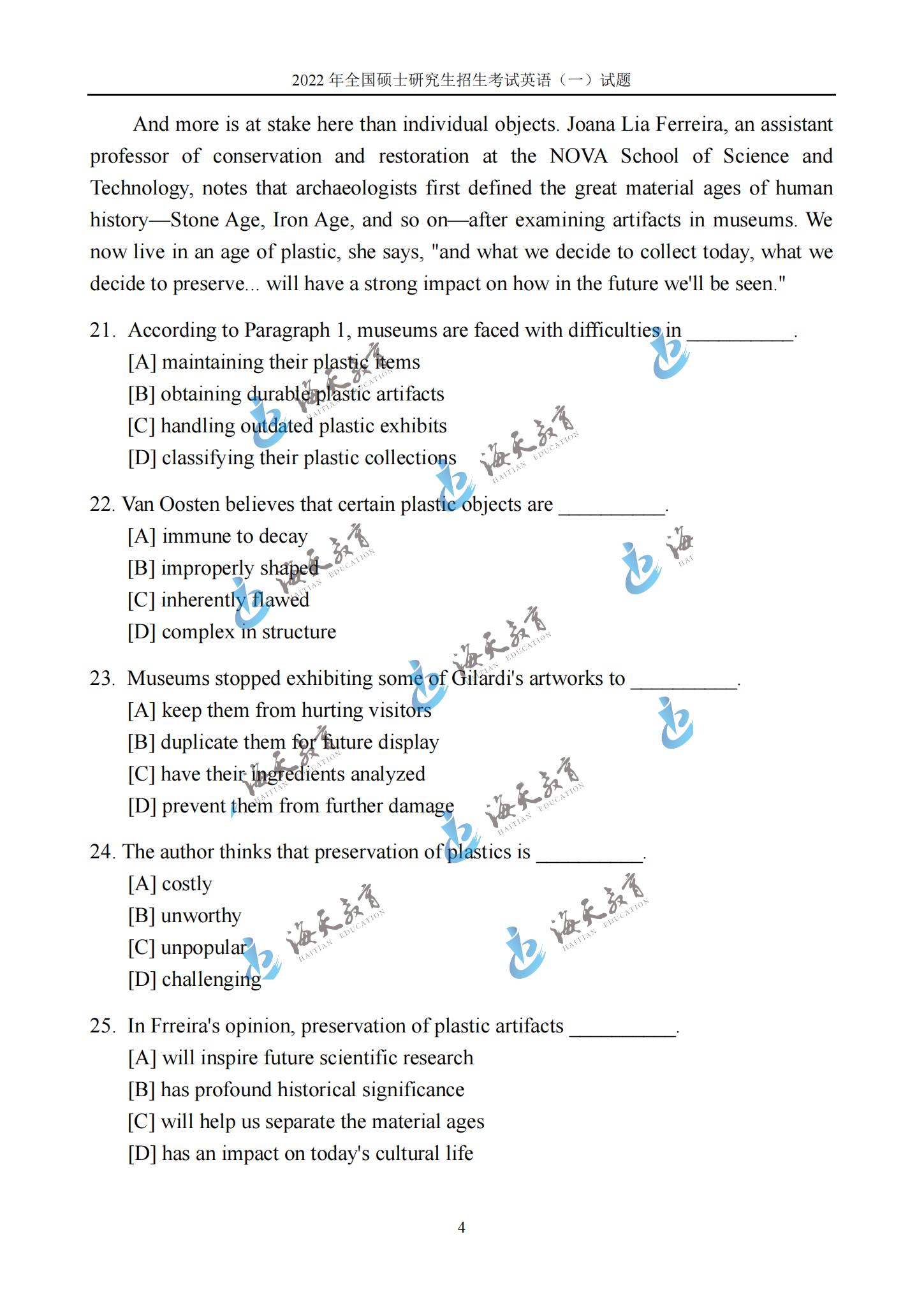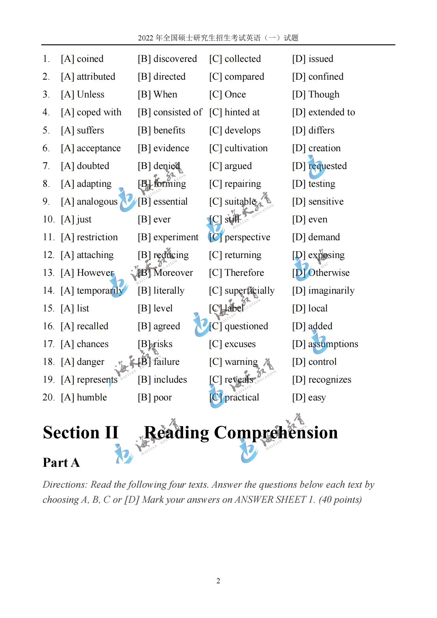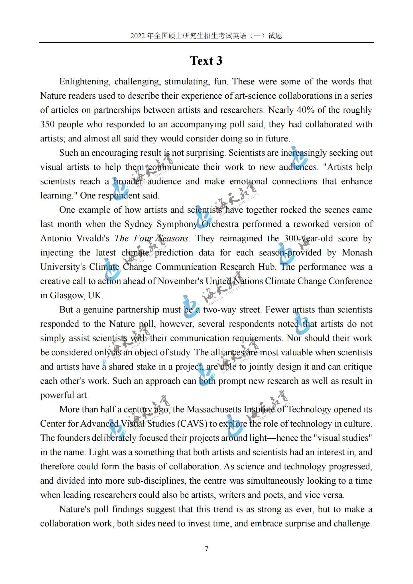 2022考研英语一真题原文完整版