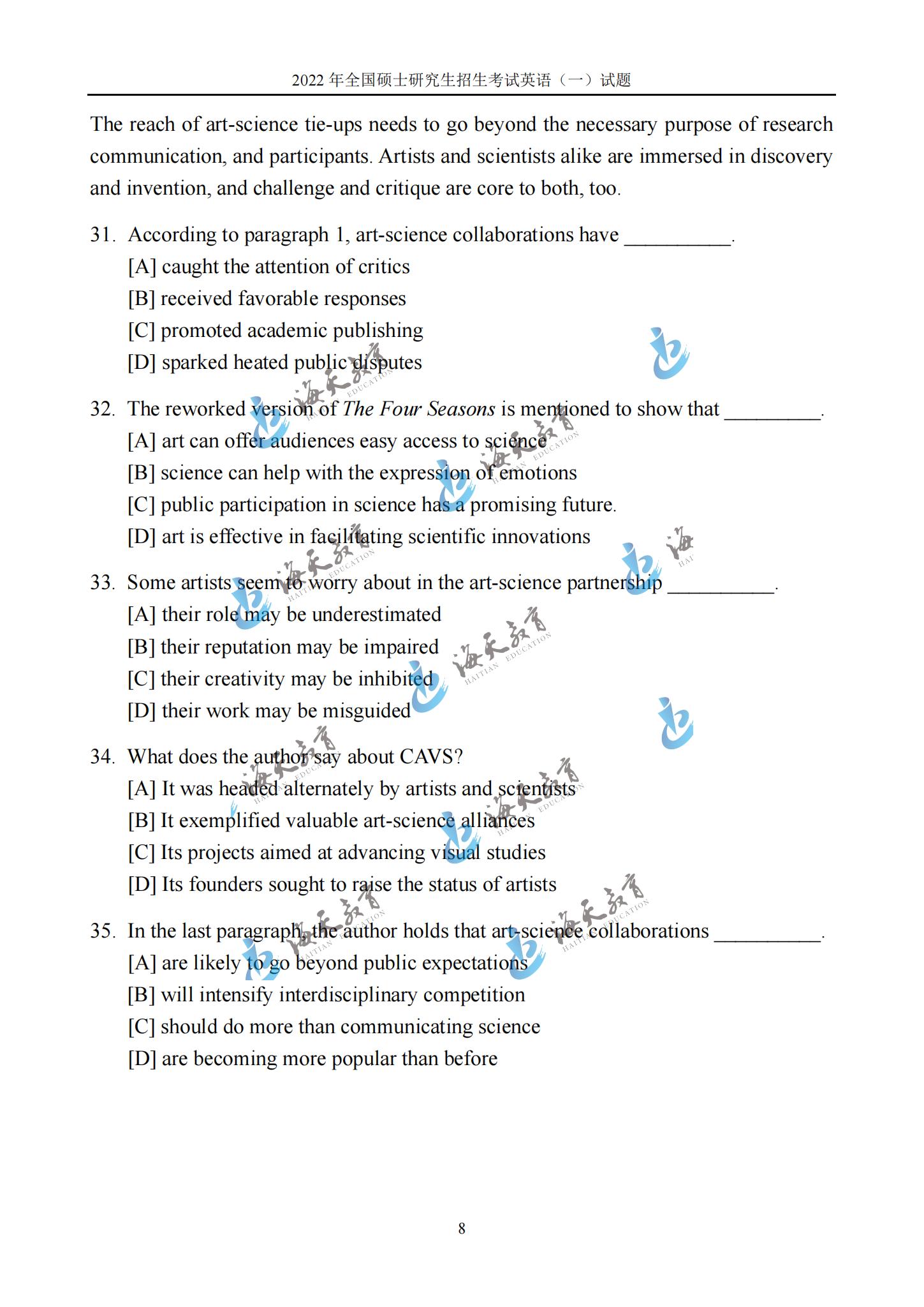 22考研英语考试结束,海天考研整理发布【2022考研真题解析专题】,可以查看22考研英语真题,答案。更多22考研政治真题及答案、22考研数学一真题及答案、22考研数学二真题及答案、22考研数学三真题及答案,请持续关注【2022考研真题解析专题】!